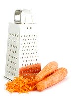 Using a blender with grating attachment, place the carrots in the shoot and push down with the shredder tool.